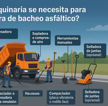 ¿Qué maquinaria se necesita para una obra de bacheo asfáltico?